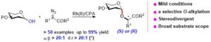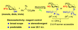- “Rh(II) and Chiral Phosphoric Acid Co-catalyzed Selective O–H Insertions for Stereodivergent O-Alkylation of Glycosides” Wu, J.;‡ Jia, P.;‡ Tang, H.; Cai, D. and Tang, W.* J. Am. Chem. Soc. 2025, 147, 5871–5878. Link. (‡Equal Contribution)